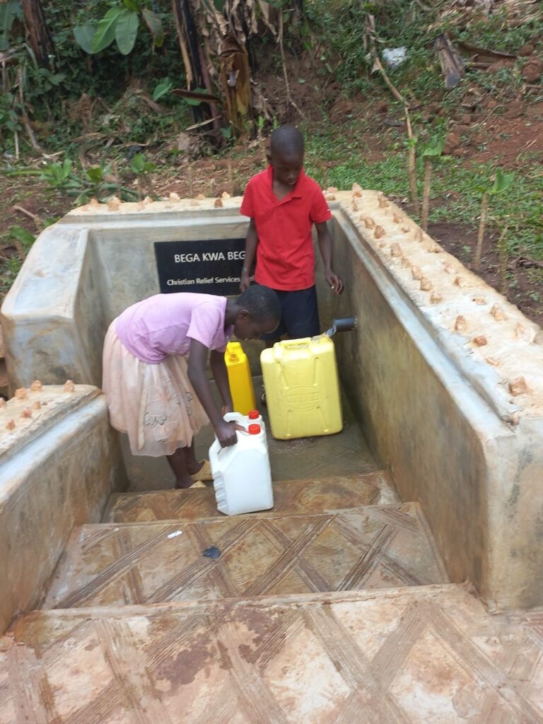 The protected spring “has greatly improved people’s lives as indeed – water is life,” says Denis. “They are now sure of good health, and they are free from waterborne illnesses.”