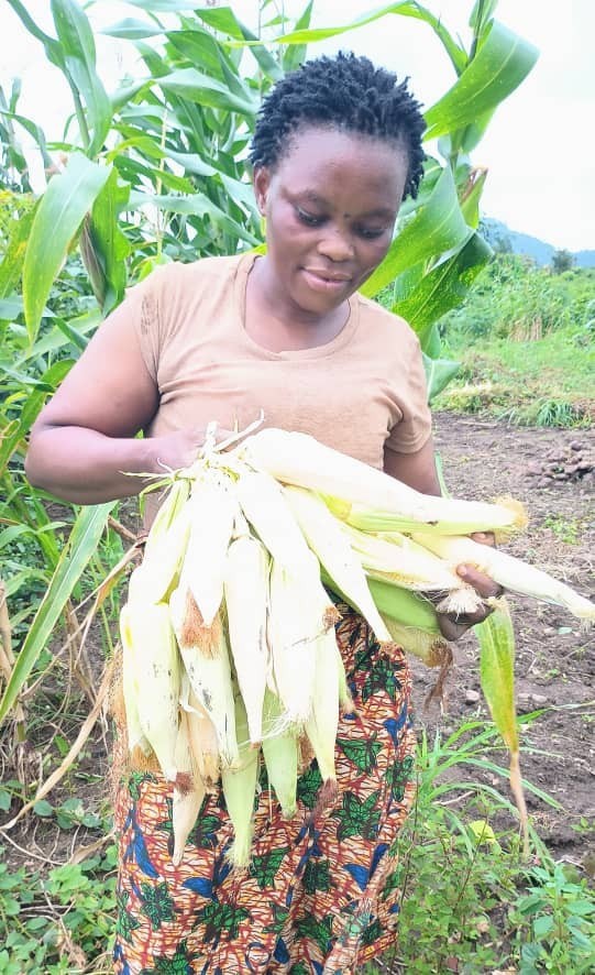 She began immediately benefiting greatly from the training, tools and materials she received, telling us, “I implemented the new farming skills I learnt during the training, and it helped improve the yield.