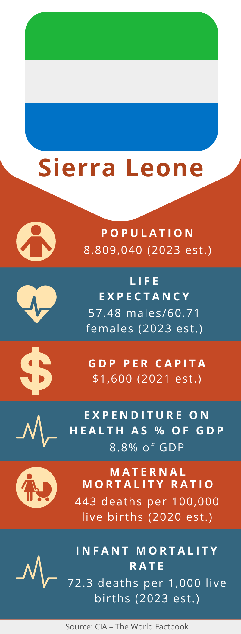 Current Need: Medicines, medical supplies, and equipment for use in health centers serving people in four underserved districts in the country: Bombali, Kambia, Bonthe, and Moyamba.