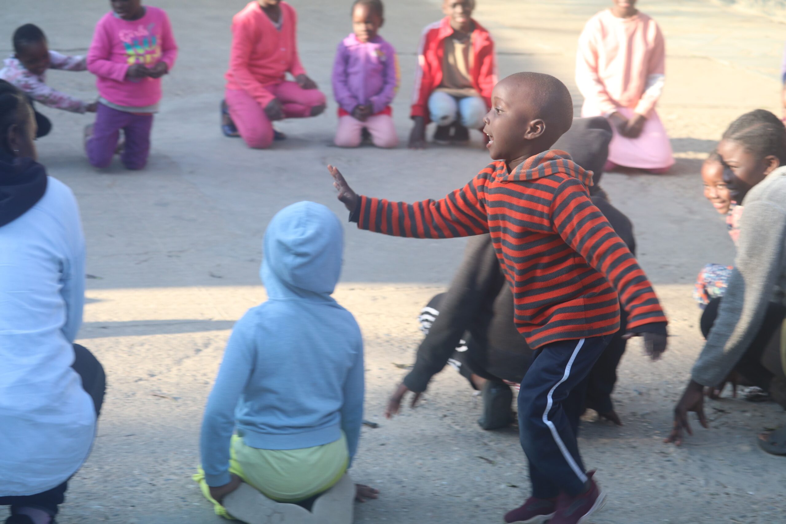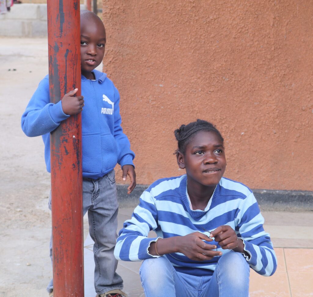 On Mondays through Thursdays, the children arrive back home to Kabwata at 3:30 p.m. (the older ones attending secondary school arrive at 4 p.m.) where the change out of their school uniforms and play games such as “Duck, Duck, Goose,” where the player who is “it” walks around all the other children sitting in a circle walking slowly until he or she who is “it” taps a seated child on the head and the chase begins.